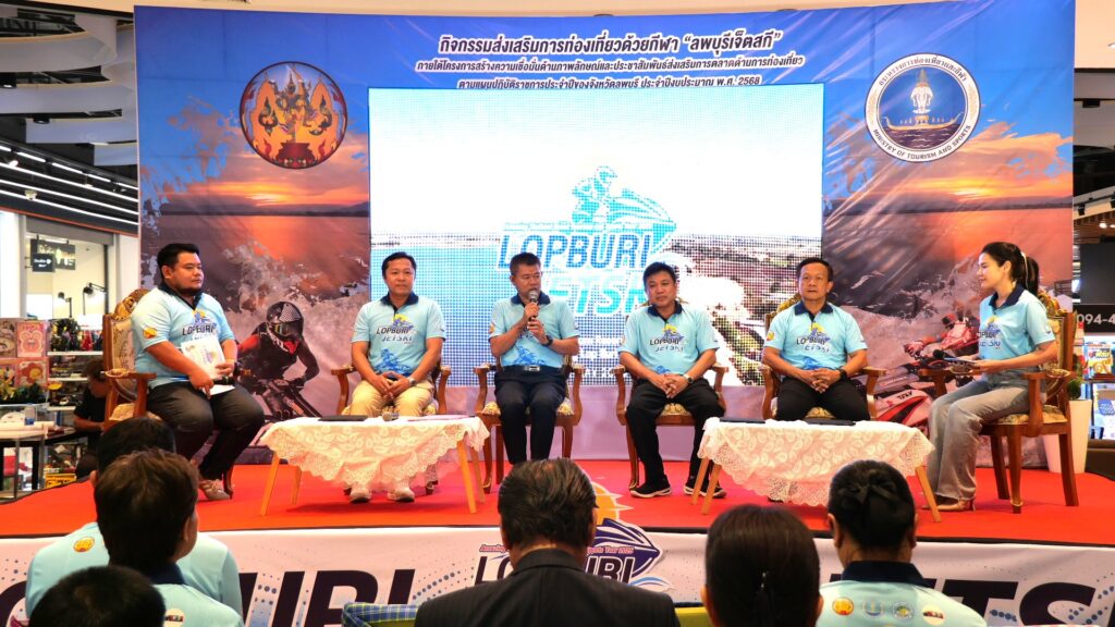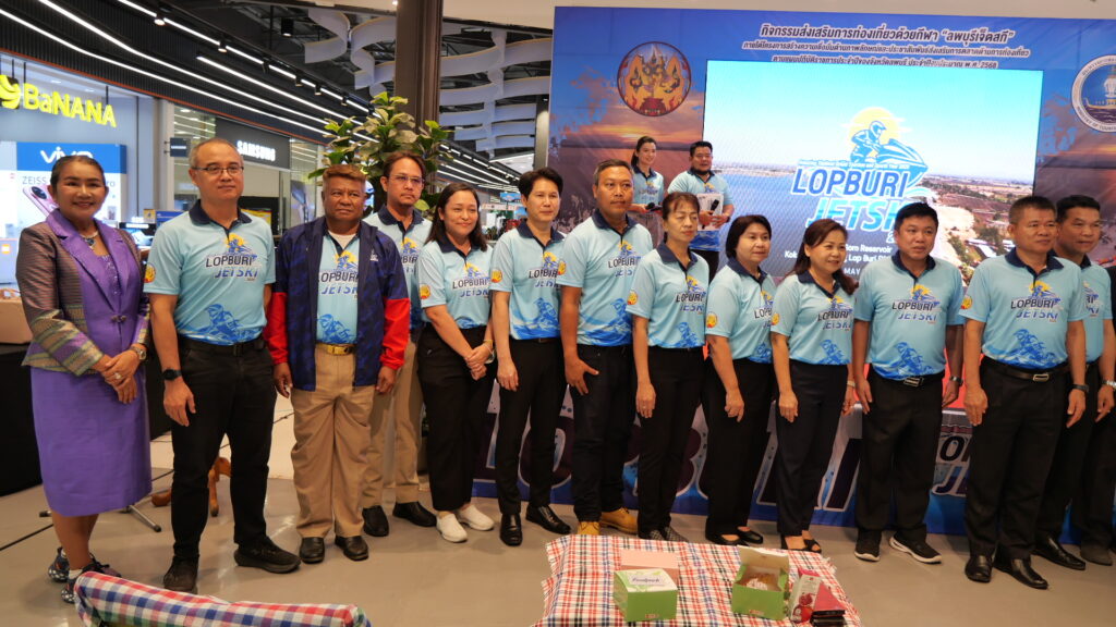 เวลา 16.30 น.วันที่ 19 พฤษภาคม 2568  ว่าที่ร้อยตรี ทรงพล แป้นแก้ว รองผู้ว่าราชการจังหวัดลพบุรี นายมหิทธร สุรบุญจรัส ท่องเที่ยวและกีฬาจังหวัดลพบุรี นายธงชัย อิ่มอรชัย กำนันตำบลโคกตูม นายพิษณุ โพธิ์รักษา เลขาธิการสมาคมกีฬาเจ็ตสกีบางกอกคิงส์ร่วมแถลงข่าวการจัดการแข่งขัน ลพบุรีเจ็ตสกี” LOPBURI Jetski 2025 ที่ ลานกิจกรรม ชั้น 2 ศูนย์การค้าโรบินสัน ไลฟ์สไตล์ จังหวัดลพบุรี  ภายใต้แนวคิด Amazing Thailand Grand Tourism & Sport Year bobe  เพื่อสร้างความเชื่อมั่นด้านภาพลักษณ์และประชาสัมพันธ์ส่งเสริมการตลาดด้านการท่องเที่ยว โดยจะจัดขึ้น ในระหว่างวันที่ 24 -25 พฤษภาคม 2568 ณ อ่างเก็บน้ำห้วยส้ม ตำบลโคกตูม อำเภอเมืองลพบุรี จังหวัดลพบุรี โดยการจัดการแข่งขันในครั้งนี้ได้หนังสือรับรองจาก สมาคมกีฬาเจ็ตสกีบางกอกคิงส์ ว่าเป็นสนามการแข่งขันที่ได้มาตรฐาน โดยการแข่งขันทั้งหมดจะแบ่งเป็นรุ่นเยาวชน อายุ 13-15 ปี จำนวน 5 รุ่น และรุ่นประชาชนทั่วไป จำนวน 11 รุ่น โดยมีนักแข่งเจ็ตสกีจากทั่วประเทศไทย มาเข้าร่วมการแข่งขัน จำนวน 100 ลำ และมีผู้เข้าร่วมกิจกรรมในครั้งนี้มากกว่า 500 คน ซึ่งภายในวันจัดการแข่งขันยังมี กิจกรรมส่งเสริมการท่องเที่ยวของชุมชนในพื้นที่ โดยจัดจำหน่วยสินค้าและผลิตภัณฑ์ทางการท่องเที่ยวของชุมชนในพื้นที่มานำเสนอให้กับนักกีฬาและนักท่องเที่ยวได้ชมและเลือกซื้อเป็นของฝากอีกด้วย