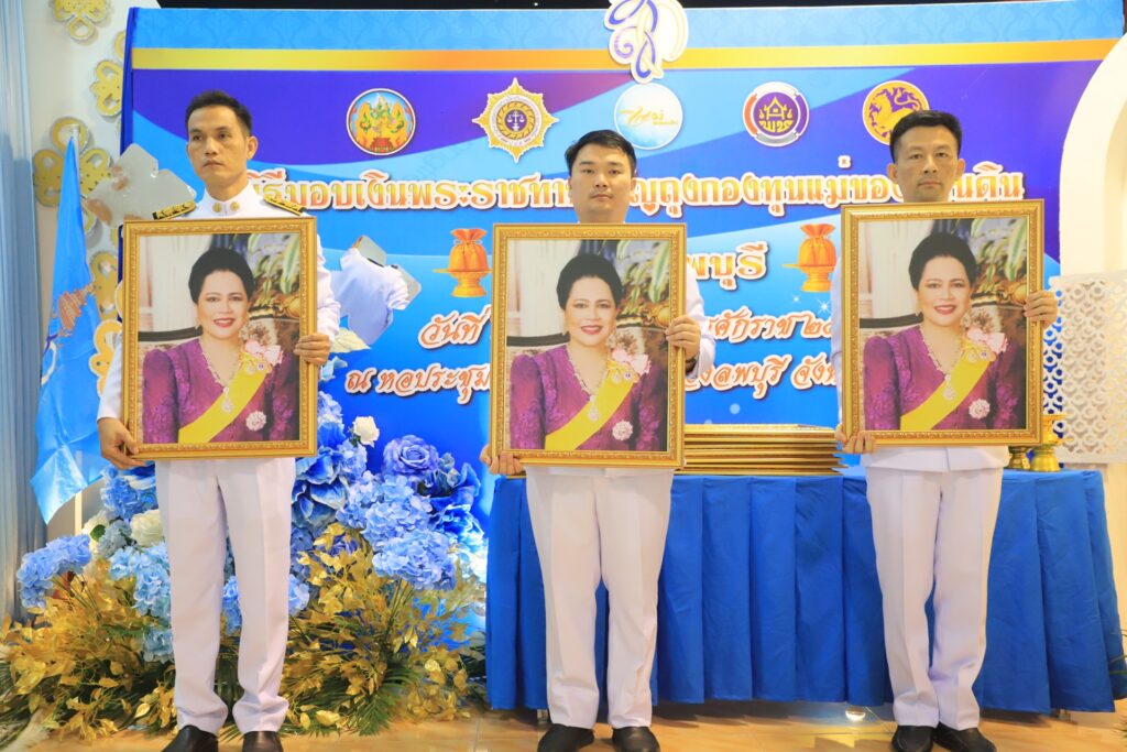วันที่ 27 สิงหาคม 2568 เวลา 09.30 น. ที่ หอประชุมที่ว่าการอำเภอเมืองลพบุรี นายอำพล อังคภากรณ์กุล ผู้ว่าราชการจังหวัดลพบุรี เป็นประธานในพิธีมอบเงินพระราชทานขวัญถุงกองทุนแม่ของแผ่นดิน ประจำปี 2568 และบรมพระฉายาลักษณ์ สมเด็จพระนางเจ้าสิริกิติ์ พระบรมราชินีนาถ พระบรมราชชนนีพันปีหลวง ให้กับผู้แทนหมู่บ้าน ชุมชนกองทุนแม่ของแผ่นดิน โดยมีนางสุวจี ศิริปัญโญ ประธานแม่บ้านมหาดไทยจังหวัดลพบุรี นางบัณฑิตา หมื่นพรม พัฒนาการจังหวัดลพบุรี นายอภิชาติ โล่ห์สุวรรณ ประธานเครือข่ายกองทุนแม่ของแผ่นดินจังหวัดลพบุรี หัวหน้าส่วนราชการ ผู้แทนจากสำนักงานป้องกันและปราบปรามยาเสพติด ภาค 1 ข้าราชการ เจ้าหน้าที่ และหน่วยงานที่เกี่ยวข้องเข้าร่วมพิธี