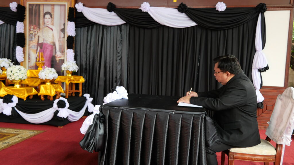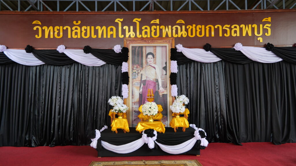 วิทยาลัยเทคโนโลยีพณิชยการลพบุรี จัดพิธีน้อมรำลึกในพระมหากรุณาธิคุณและลงนามถวายความอาลัย สมเด็จพระนางเจ้าสิริกิติ์ พระบรมราชินีนาถ พระบรมราชชนนีพันปีหลวง