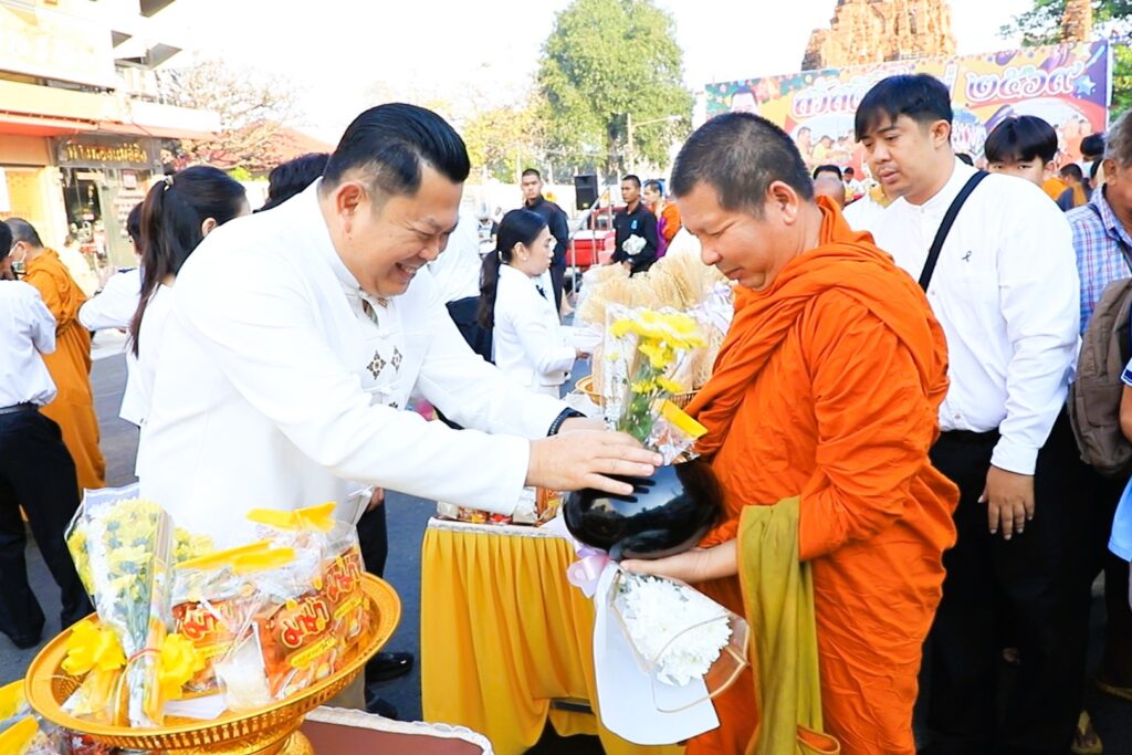 ผู้ว่าราชการจังหวัดลพบุรี นำประชาชนชาวจังหวัดลพบุรีตักบาตรข้าวสาร อาหารแห้ง เพื่อความเป็นสิริมงคลต้อนรับวันขึ้นปีใหม่ 2569
