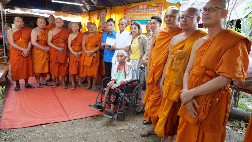 พระธรรมวชิรสุนทร (ประเทือง อาภาธโร) เจ้าคณะจังหวัดลพบุรี ฝ่ายสาธารณสงเคราะห์ คณะสงฆ์จังหวัดลพบุรี ทุน “สัจจะบริจาคทรัพย์เพื่อสาธารณสงเคราะห์ (100 ร้อยดวงใจ) มอบเงินช่วยเหลือแก่สมาชิกผู้ประสบภัย นางสาวนงนุช อนุสนธิ์ เลขที่ 17/1 หมู่ที่ 2 ตำบลหนองกระเบียน อำเภอบ้านหมี่ จังหวัดลพบุรี ร่วมมอบเงินจำนวน 100,000 บาท