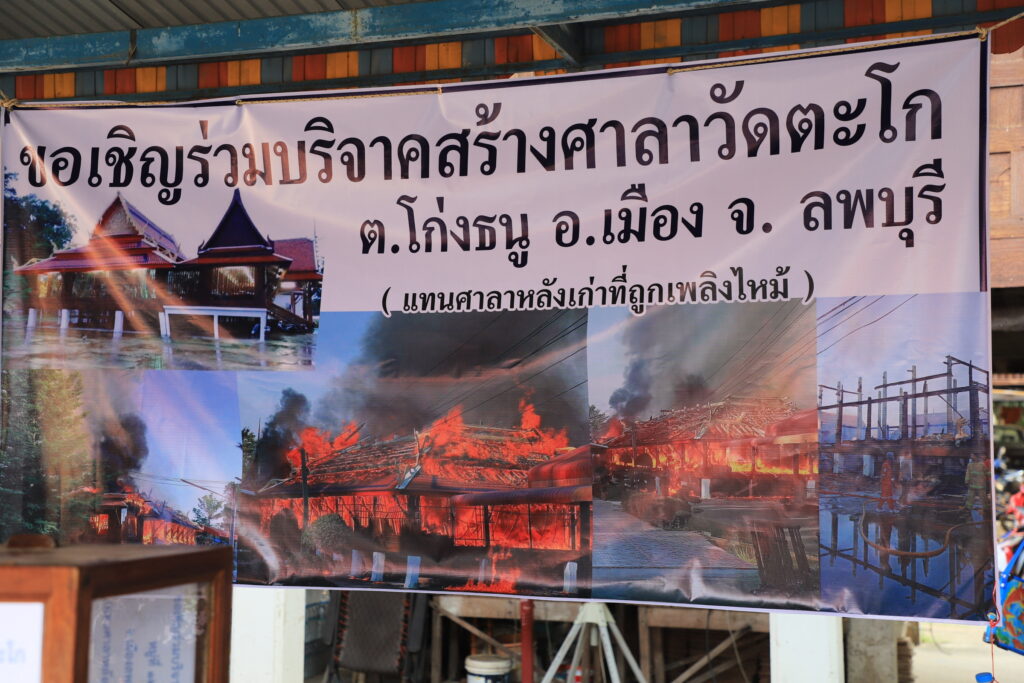 จึงขอเชิญชวนพุทธศาสนิกชน และผู้มีจิตศรัทธาร่วมบริจาคเงินตามกำลังศรัทธา เพื่อสมทบทุนในการก่อสร้างศาลาการเปรียญหลังใหม่ ทดแทนหลังเดิมที่ถูกไฟไหม้ ในการสืบสานพระพุทธศาสนาและเป็นศูนย์รวมจิตใจของชาวบ้านตำบลโก่งธนู อำเภอเมืองลพบุรี จังหวัดลพบุรี สืบไป