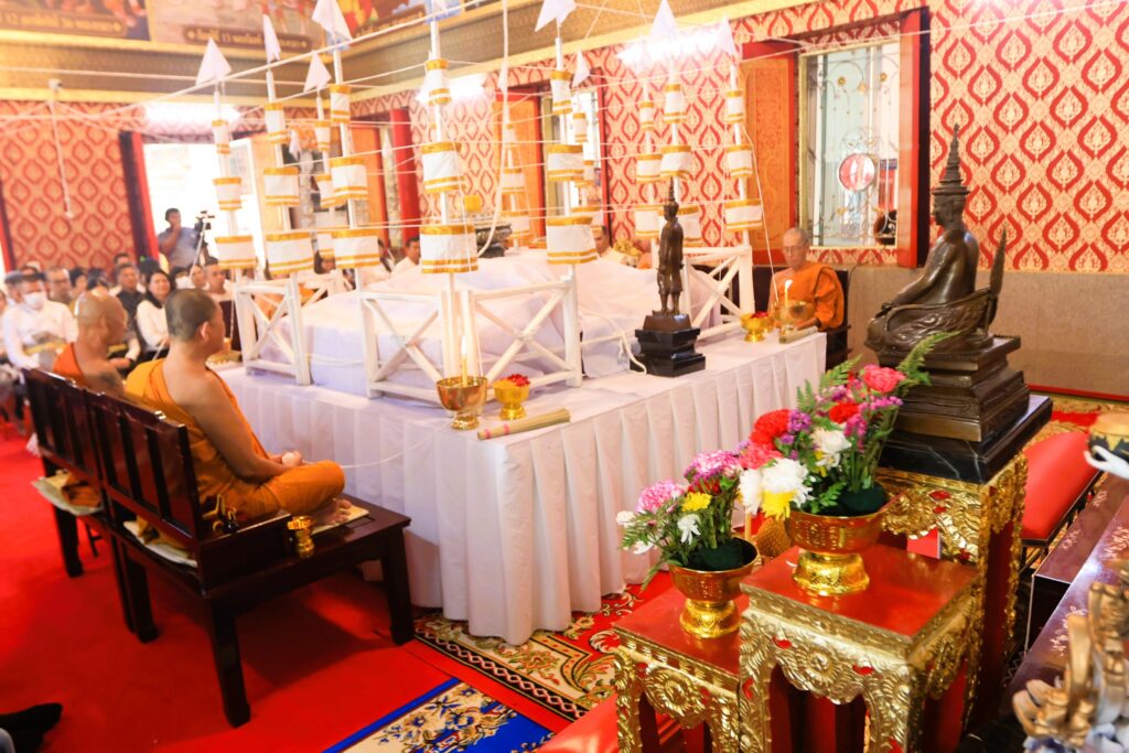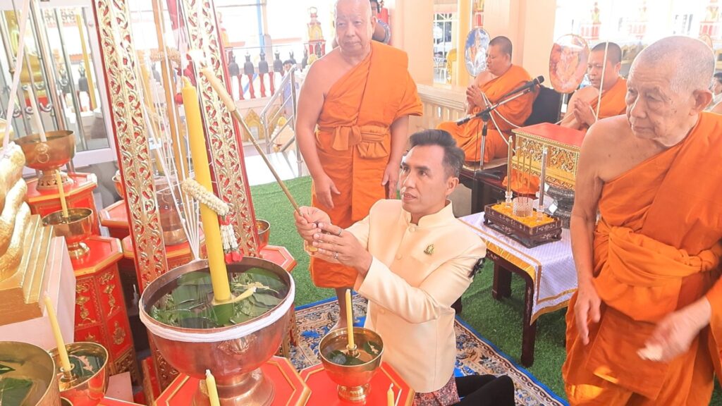 นั่งปรกอธิษฐานจิต และพระมหานาค จำนวน 4 รูป สวดคาถาพุทธาภิเษก จากวัดกวิศรารามราชวรวิหาร ทำพิธีพุทธาภิเษก เข็มกลัดที่ระลึก สมเด็จพระนารายณ์มหาราช ประจำปี 2569 “รุ่นนั่งบัลลังก์” โดยมี หน่วยงาน ทหาร ตำรวจ หัวหน้าส่วนราชการ ข้าราชการและเจ้าหน้าที่เจ้าร่วมพิธีในครั้งนี้